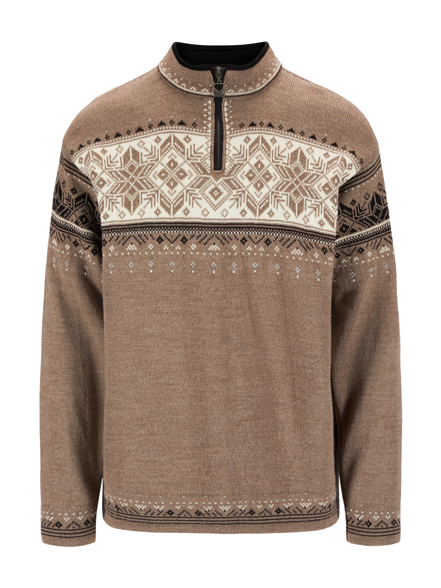 The Blyfjell is a best-selling men's sweater rooted in timeless Norwegian tradition. Made from 100% lightweight wool, it offers natural warmth and comfort while featuring a quarter-zip neckline with a fleece-lined collar for added softness. The intricate design showcases classic Norwegian folk patterns, including variations of the iconic eight-petal rose – a symbol of Norwegian heritage and artistry.