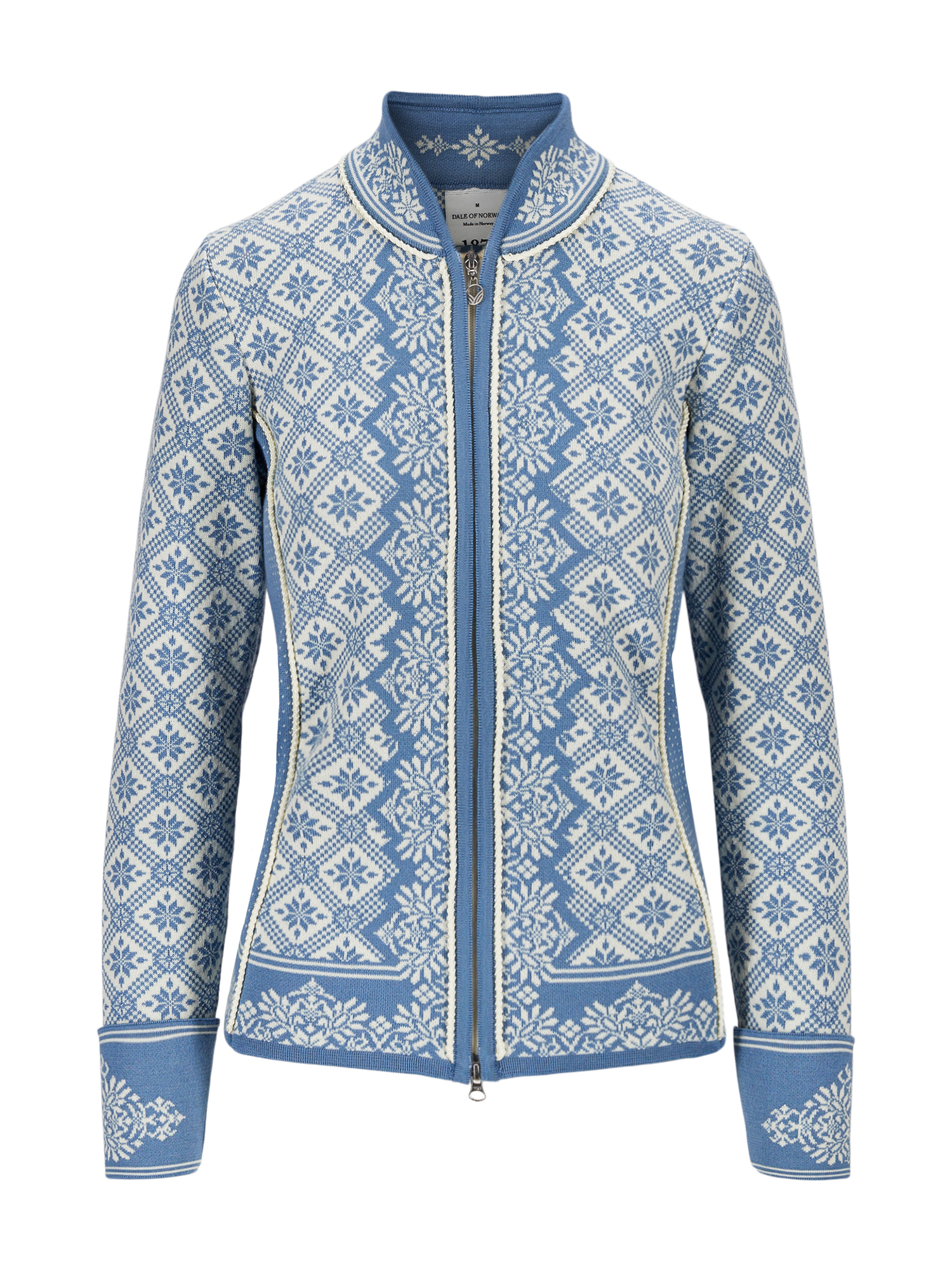 The Christiania is a skin-soft merino wool jacket inspired by the elegant fashion trends of the early 20th century. Featuring traditional Norwegian patterns such as the iconic eight-petal rose, decorative roll-up cuffs, and flattering side panels, it blends classic femininity with modern comfort.